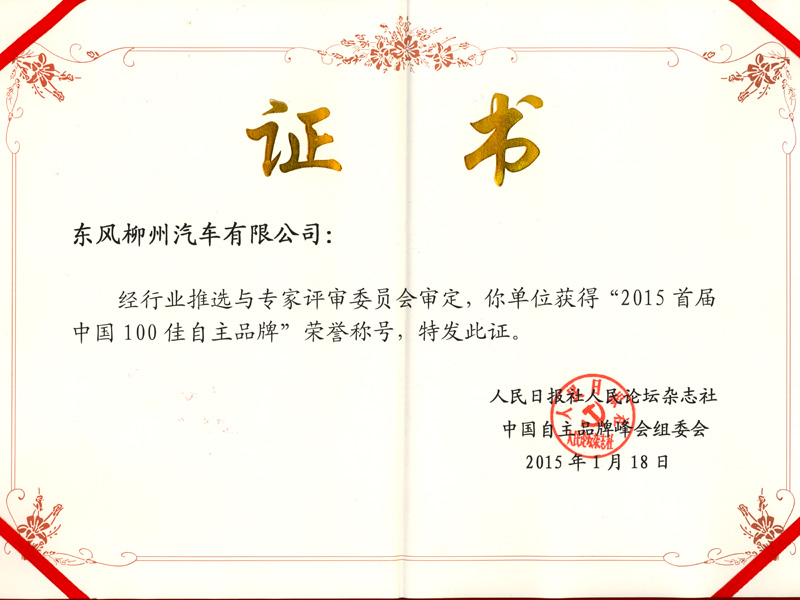 »ñ½±Ãû³Æ£º£º£º2015ÄêÊ×½ìÖйú100¼Ñ×ÔÖ÷Æ·ÅÆ
